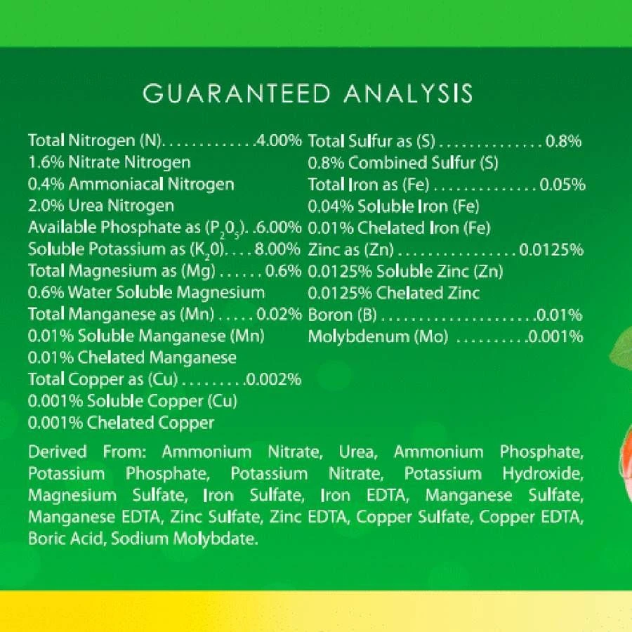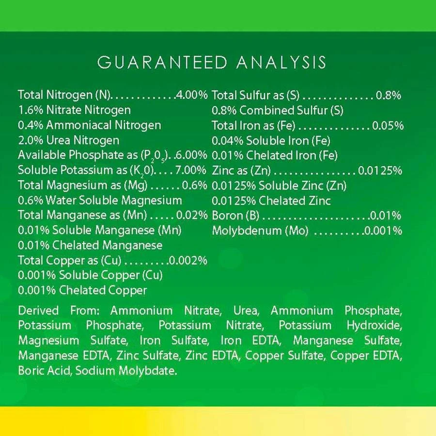 Use one capful of AlgoPlus per gallon of water as a regular feed, or ½ capful to spray directly onto the foliage. It contains no chlorides, no carbonates, and no sodium. A single bottle makes more than 100 gallons of solution.
