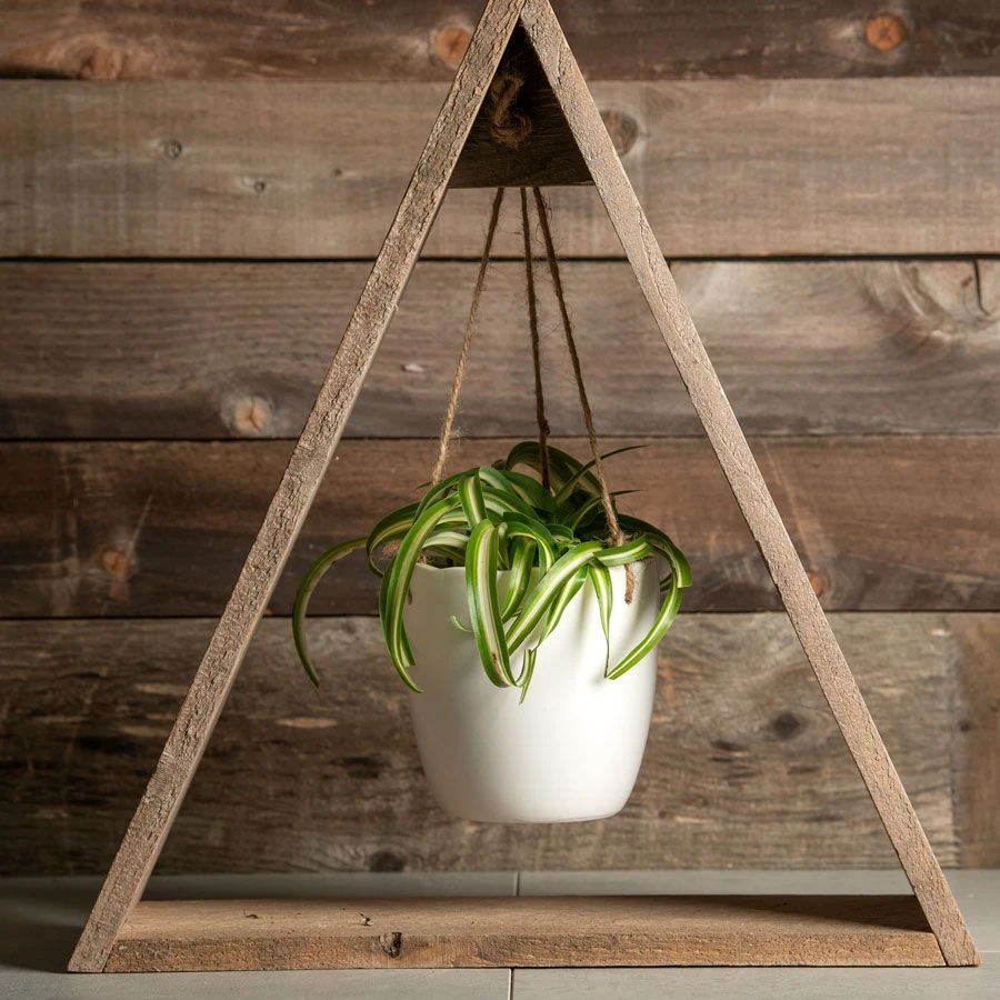 Naturally decorative, spider plants have gracefully arching leaves that produce a lovely fountaining effect. Displayed in the wooden frame, the plant becomes a literal 3-D work of botanical art with a rustic yet modern appeal that fits any decor.