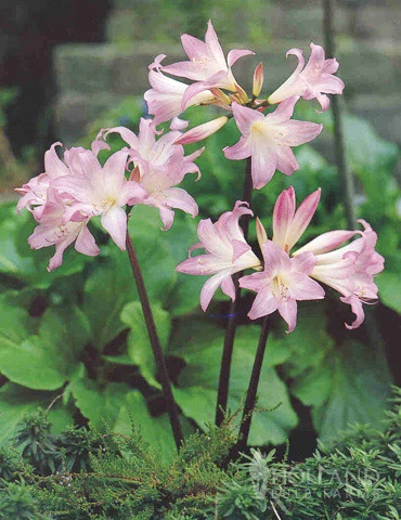 Unlike indoor amaryllis, the Amaryllis Belladonna can be planted outdoors and blooms during the summer. Plant these bulbs in warm, dry, well drained soil and expose them to full or partial sun for best results. These critter resistant bulbs can be planted in gardening beds and containers and will produce fragrant pink blossoms.