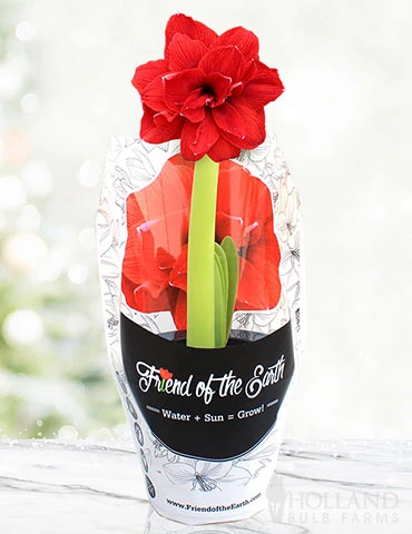 Our Ready-to-Gift Amaryllis series feature large bulbs already planted in soil in a durable pot. Each also comes packaged in a beautiful decorative sleeve making these pre-potted Amaryllis Ready-to-Gift!