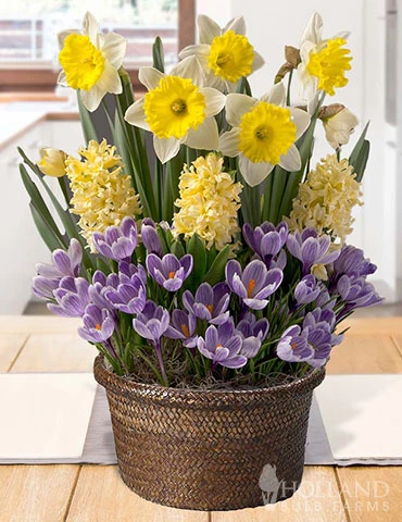 Blooming with style, grace, and eminence! This potted bulb garden combines the elegance and stature of royalty with King of the Striped Crocus, Yellow Queen Hyacinths, and Attraction Daffodils. A sunny location is necessary for optimal blooms and growth from this bulb garden. Place the bulb garden in a sunny window that receives at least 5 hours of sun per day.