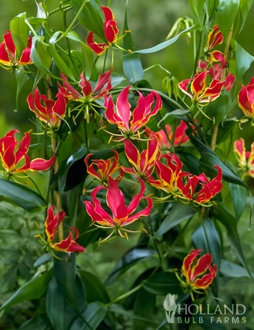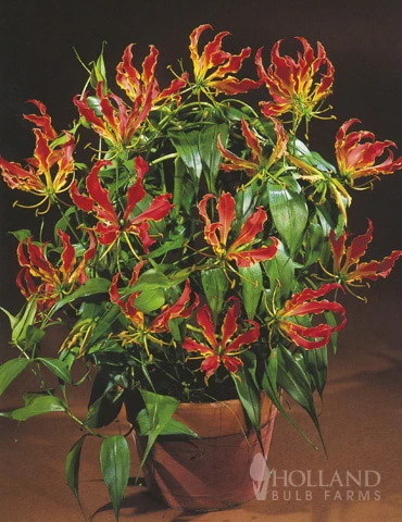 The Gloriosa Lily is a unique bulb that you are sure to want in your summer garden. This exotic flower will bring you home to the tropics with its vining habit and vibrantly-colored red and yellow wavy, swept-back petals. Grow in your favorite container or let it trail up your favorite arbor or along an architectural structure.