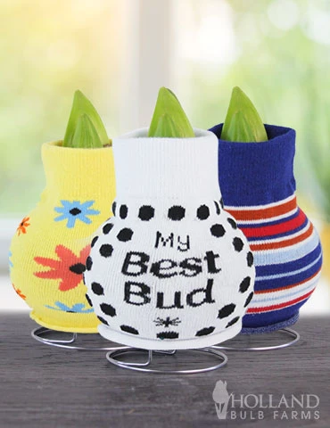 Sometimes all you need is a set of amaryllis wearing cozy sweaters, because it’s fun! Give as a gift to cheer up that special person in your life, we are sure they will smile when they see these fun sweater amaryllis. The bulbs included are ready to grow, no water needed. Amaryllis even grow in low light settings, making them perfect for offices, and other indoor spaces for low light.