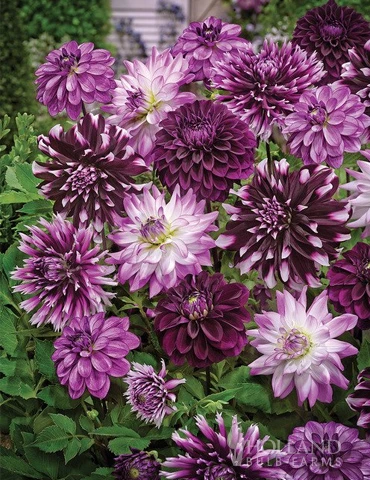 A Midnight Garden Party? Thanks for the invite! We invite you to enjoy this delightful party of dahlia blooms in your garden this Summer. Various shades of purple, and assorted flower sizes add to the fun of this party! Plant in full sun, in a garden bed or cutting garden.