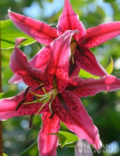 Miss Feya Orienpet Lily is a bright, bold raspberry lily with white edges. This beautiful variety is not only disease resistant but also very fragrant. Miss Feya Orienpet Lily will get about 4′ tall but has the potential to grow even taller in the right environment.