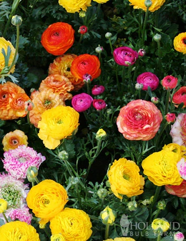The Tecolote® Ranunculus are among the largest, most prolific varieties available! Our mixed package of this popular, beautiful variety features Red, Orange, White and Yellow which is sure to bring a bright pop of color to any garden! Each Tecolote® Ranunculus Bulb can produce up to 8-10 peony shaped flowers on sturdy stems. The double blooms can reach 4” to 5” across. Make sure to make Tecolote® Ranunculus part of your Spring garden!