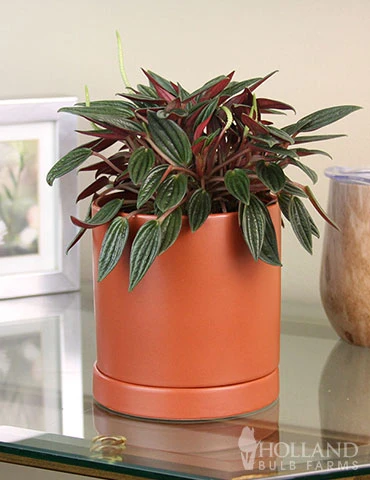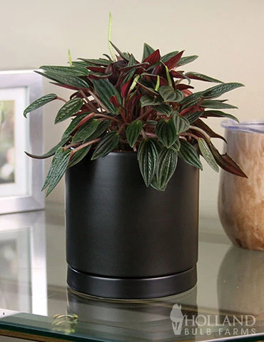 Are you looking for an interesting houseplant that adds a pop of color to your indoor space? If so, the Peperomia Rosso is the perfect plant for you! The pointed dark green, rippled leaves have a brilliant red underside making this indoor plant truly stunning! Peperomia Rosso also have green to light brown flower spikes that appear during the Spring and Summer months adding even more textural interest! This houseplant prefers indirect light and will do well in low to high light situations. Peperomia Rosso love humidity so will thrive when mnisted a few times a week but they do not like to be overwatered. Water every 1-2 weeks or when the soil is dry to the touch.
