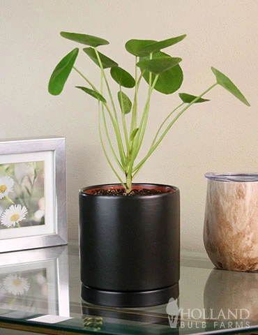 Pilea Chinese Money Plant is one of the trendiest houseplants on the market today! The bright green, round leaves make this a truly unique addition to your indoor space! This slow growing plant is perfect for a small, indoor space on a desk or tabletop. The Pilea Chinese Money Plant is very easy to grow making this perfect for new plant parents! Water every 2-3 weeks or when soil is dry and place in a brightly lit room away from windows. To keep this plant growing evenly, we do recommend rotating weekly to ensure all sides of the plant receive equal sunlight.