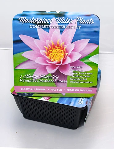 Our ready to grow Pink Hardy Waterlily plants will add intense color and green foilage to any water garden, while also attracting birds and butterflies. This plant is also cold hardy and will survive winter temperatures as low as -30 degrees Fahrenheit in any pond where water does not freeze to pot level. These lilies will thrive with any other water plants already growing in your pond. Simply drop the water plant kit into your pond and watch it grow!