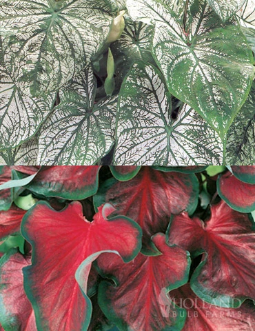 This classic combination of red and white will look lovely in your shade garden this year. Caladiums are a classic shade plant, and this combination makes the perfect border planting. This collection will cover 6 square feet, if planting for a larger area you will want to increase the number you order.
