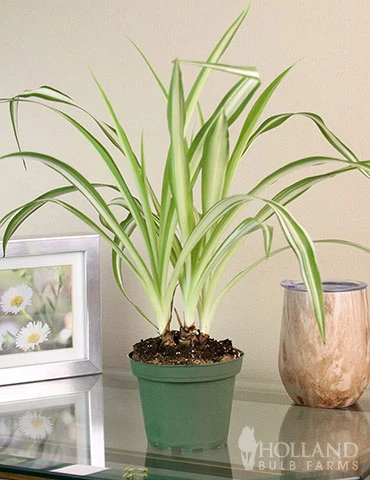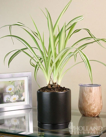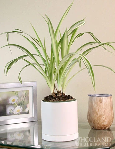 One of the most recognizable houseplants on the market, the Spider Reverse Variegated Houseplant is known for being very easy to grow indoors. The arching leaves have green centers with bright white margins. Spider Plants are perfect for hanging pots as they produce long, trailing stems and spider-like offsets as they mature. This plant prefers medium to bright, indirect light and only needs to be watered every 1-2 weeks or when the top 1 inch of the soil is dry.