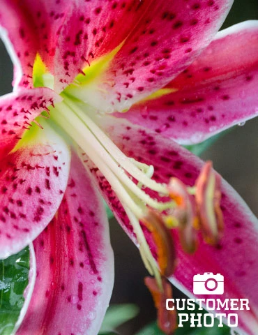 Who could forget one of the best loved Lilies, the Stargazer? It’s beautiful blooms can sometimes reach 8″ across and also emit a wonderfully sweet fragrance which is sure to stop you in your tracks! Each petal has deep fushia down the middle fading to light pink and trimmed in white including pink speckles. It is also a wonderful cut flower, making gorgeous cutflower arrangements!