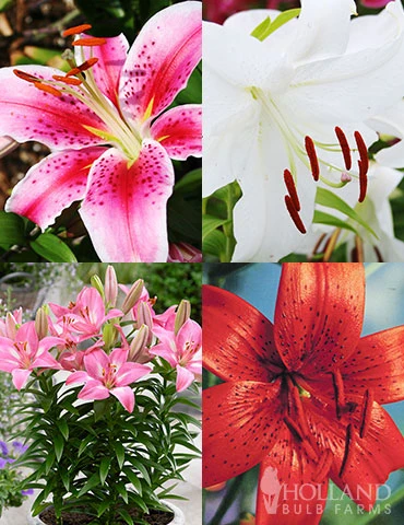 Enjoy lilies blooming in your garden this summer and many summers to follow! This collection of lily bulbs will bloom from June through early August. Plant these lilies together in the same area for a parade of color or spread them out in different pockets of the garden.