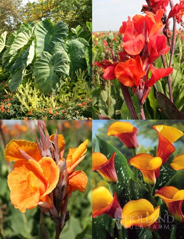 Create the tropical garden of your dreams! Pair the Elephant Ear with Canna Lilies and Calla Lilies and enter your own tropical paradise! The Canna Lilies will grow tall (60 inches tall) and should be placed towards the back. Then grow the Elephant Ears (24-26 inches tall) off to the side, and the Calla Lilies (24 inches tall) in the front!
