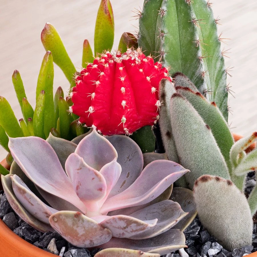The Mixed Cactus Garden displays stout prickly cactuses accompanied by a mix of colorful & textural succulent plants. The garden comes pre-planted in a durable 5-inch terracotta clay pot, which will only grow more beautiful with age.