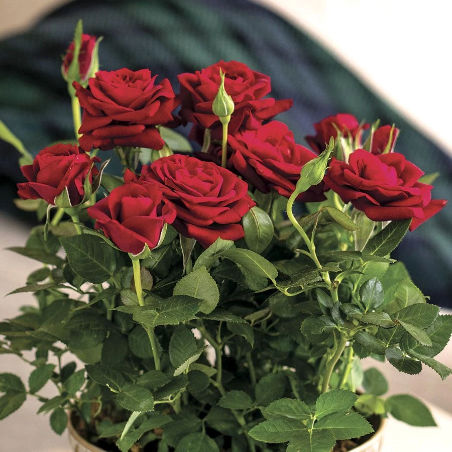 The miniature potted Red Rose Gift Plant blooms repeatedly in bold, multi-petaled, fragrant flowers and is delivered in a sophisticated gold container. When spring arrives, you can transfer this beauty into the garden and enjoy blooming red roses for many seasons to come. Perfect for a holiday, anniversary, engagement, Valentine’s Day or just to say I love you.